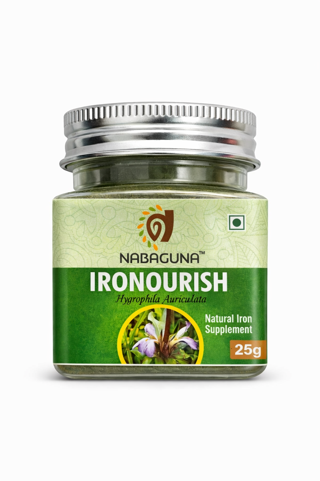 NABAGUNA Ironourish is a plant-based natural iron supplement prepared from Kulekhara (Hygrophila auriculata), a traditional Ayurvedic medicinal herb widely valued for its nutritional and therapeutic benefits. Known for its natural iron content and micronutrients, Kulekhara has been traditionally used to support healthy blood levels, improve vitality, and promote overall wellness.